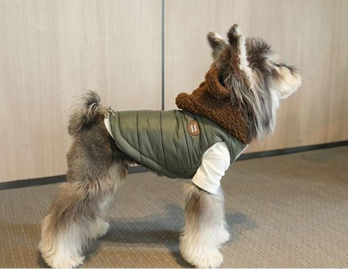 ◼︎愛犬にぴったりの「くま耳フードダウンベスト」が登場です!くま耳のボアフードが可愛らしさを引き立て、愛犬の存在感をぐっとアップさせます。前ボタンのデザインにより、着脱もスムーズでお散歩やお出かけに非常に便利です。内側は起毛生地で気持ちいい素材になっています。重ね着を楽しむこともできるので、コーディネートの幅が広がります。これからの季節、お洒落で暖かい一着は手放せません!