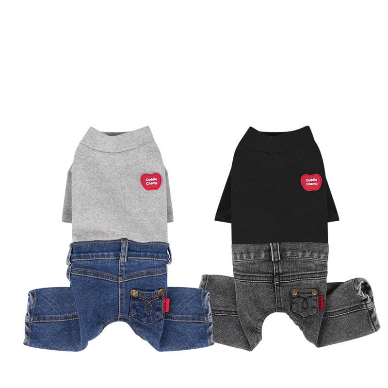 ◼︎愛犬にぴったりの「Tシャツ×デニムロンパース」が登場です!シンプルなTシャツ部分とデニムの組み合わせが絶妙で、お洒落さを引き立てるアイテム。伸縮性のあるTシャツが、愛犬にとって着せやすさと心地よさを提供します。一枚で着ても可愛らしく、さらにベストなどと重ね着を楽しむこともできるため、コーディネートの幅が広がります。普段使いやお散歩、お出かけにぴったりの一着です!