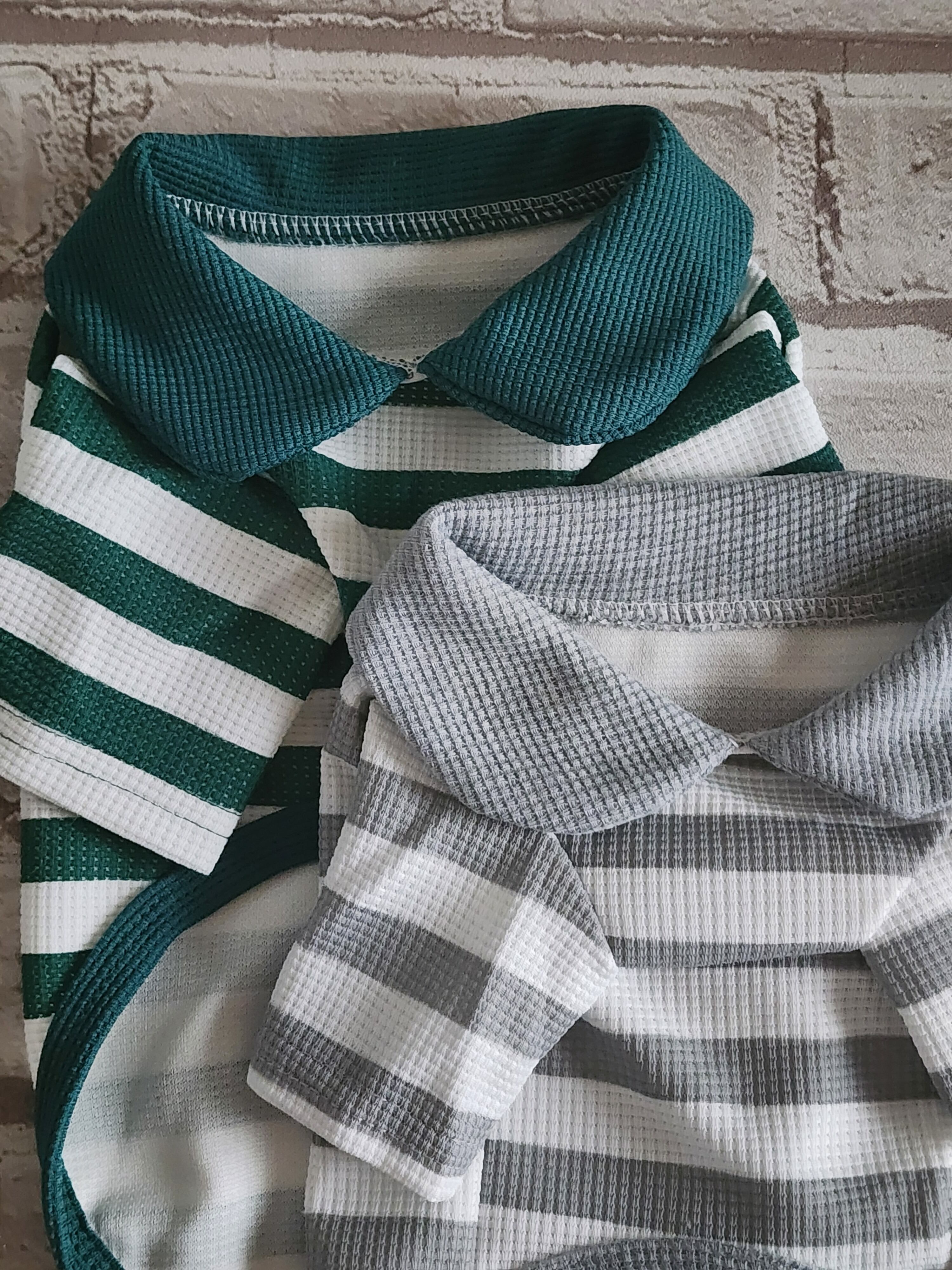 ◼︎丸襟がポイントの、太ボーダーデザインが目を引く一枚。