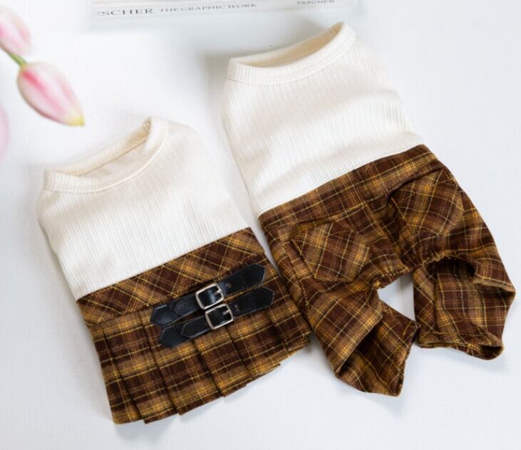 ◼︎チェック柄のスカートとパンツの切替えが可愛いワンピースとロンパースです。